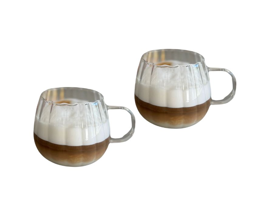 MULEX Stylische Kaffeegläser Trinkgläser 430 ml 2er Set Kapazität: 430 ml Material: Borosilikat Glas - Hitzebeständig bis zum 120 Grad Celsius. Für heiße und kalte Getränke; Cappuccino, Latte Macchiato, Türkischer Tee, Ice-Tea, Limonade, usw. Elegantes Design Inhalt: 2 Gläser