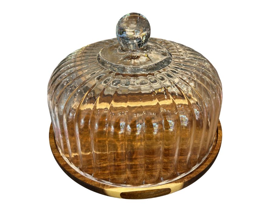 SINEM Kuchenplatte Tortenplatte auf Fuß 29cm mit Deckel Modell: SINEM Durchmesser: 28,5 cm GesamtHöhe: 29 cm Material Deckel: Glas Material Platte: Holz Marke: EASY