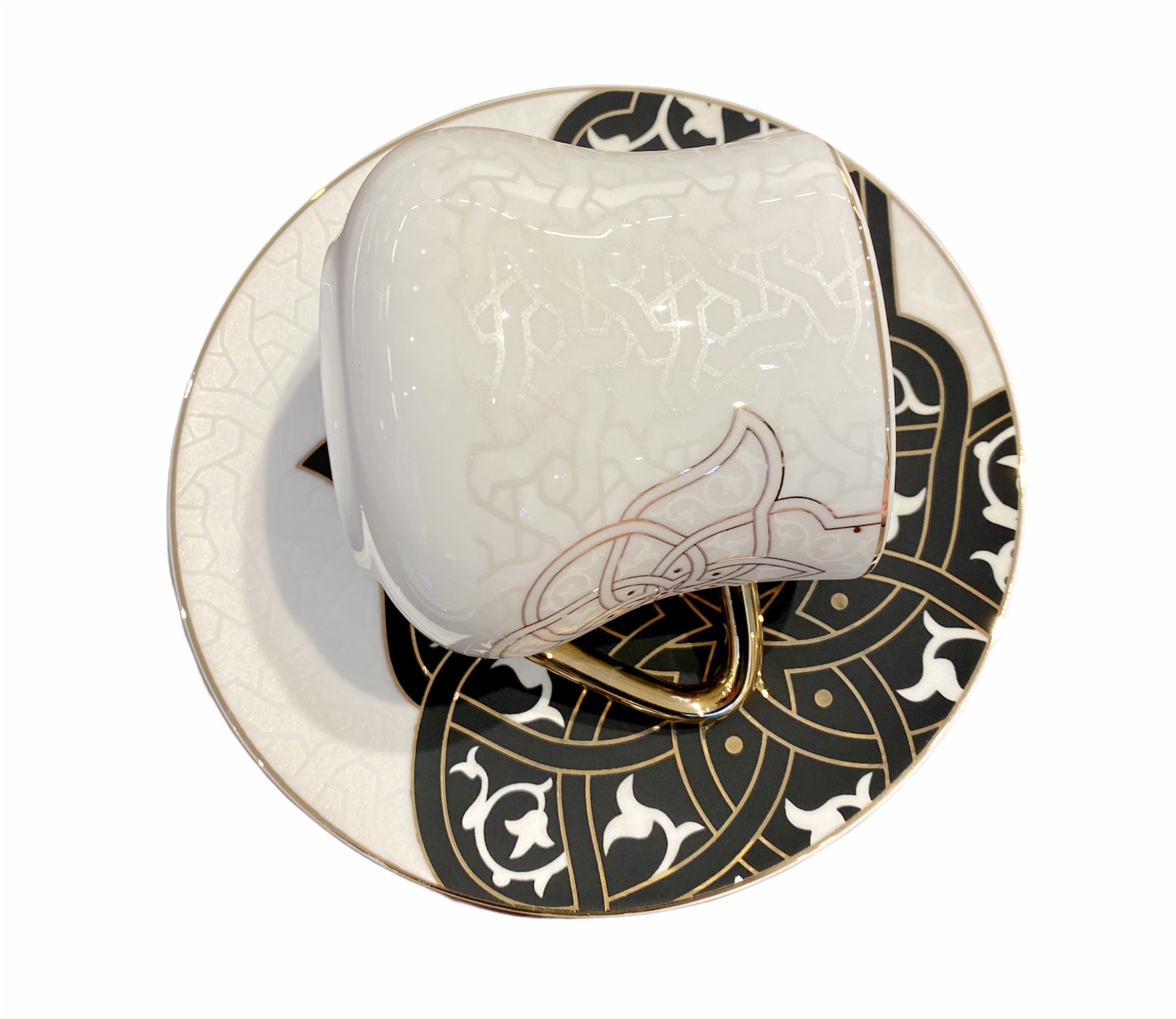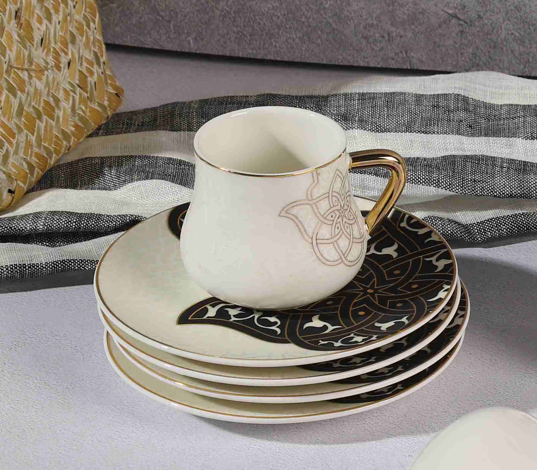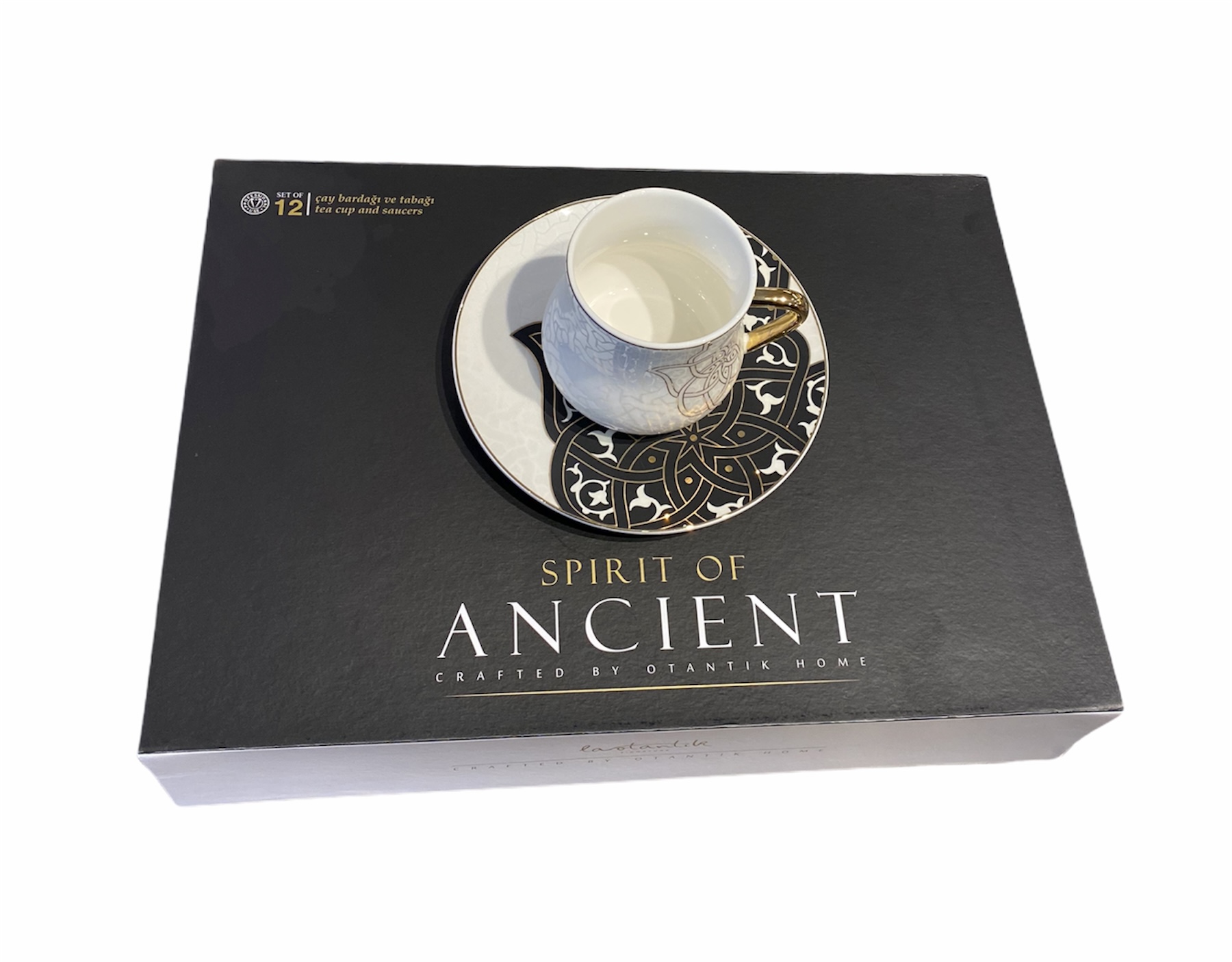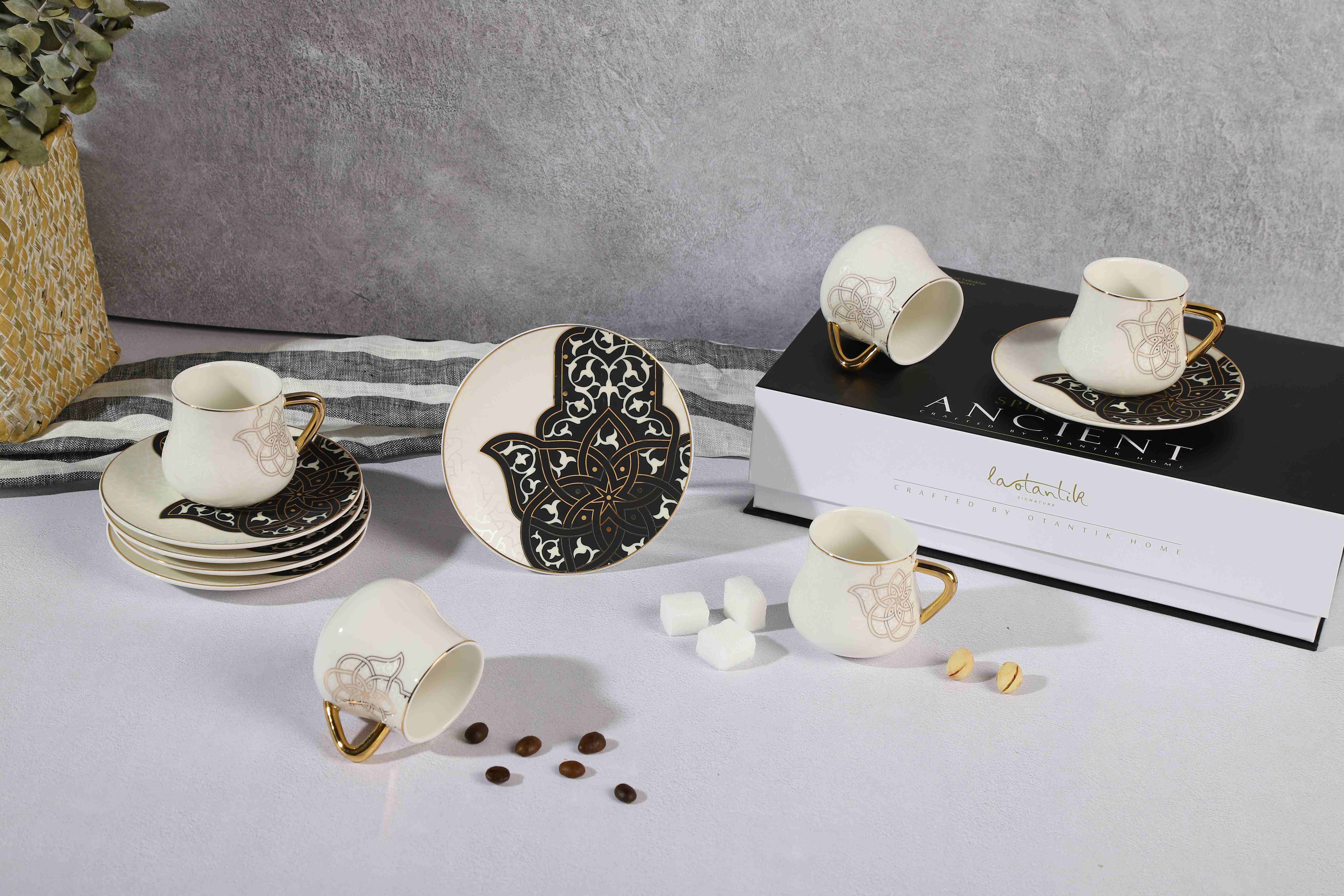 ANCIENT Design Teetassen Kaffeetassen Set Schwarz-Weiß 12-teilig