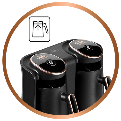 Arzum Okka GRANDIO DUO mit Wassertank 10-Tassen Mokka-Maschine Schwarz-KUPFER Ein türkisches Sprichwort besagt: " An eine Tasse Kaffee kann man sich noch 40 Jahre lang erinnern." Farbe: Schwarz-Kupfer Modell: Okka GRANDIO DUO Mit Wassertank 1-10 Tassen Kapazität - mit 2 Kannen Modellnummer: OK007 Maximale Leistung: 1400 Watt Kocherkennungssensor IntelBrew OverFlow Preventionsystem Beidseitige Auslauföffnung Messlöffel inklusive Deutsche Version, Stecker 2-Polig (EU) Original Mokka in wenigen Minuten, schnell und einfach zubereitet Einfach zu bedienen Lieferumfang: Mokka-Maschine mit Stromkabel, 2xBrühbehälter, Messlöffel und Bedienungsanleitung Geschenkaktion: 100g Türkischer Mokka Kaffee gratis dazu.