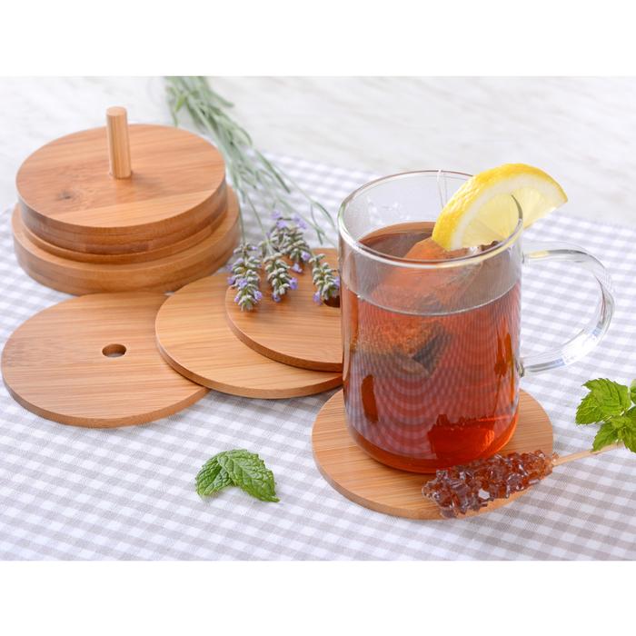 - Runde Glas-Untersetzer Bambus mit schöner Maserung
