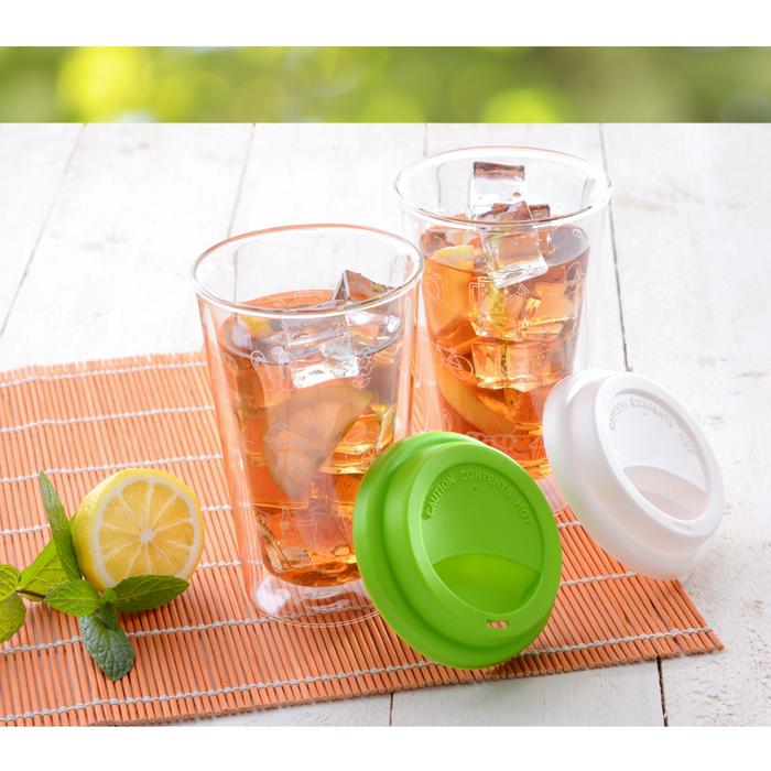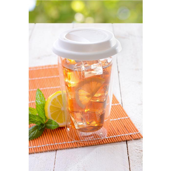 Doppelwandiger Glas-Trinkbecher mit Silikondeckel, 0,3 Liter