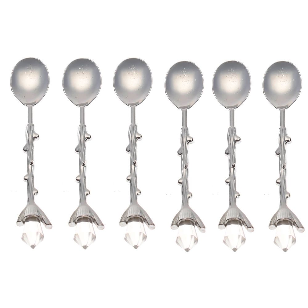 Produktinformationen "Elegante Teelöffel Mokkalöffel Silber Blumenzweig mit Kristall 6er Set"