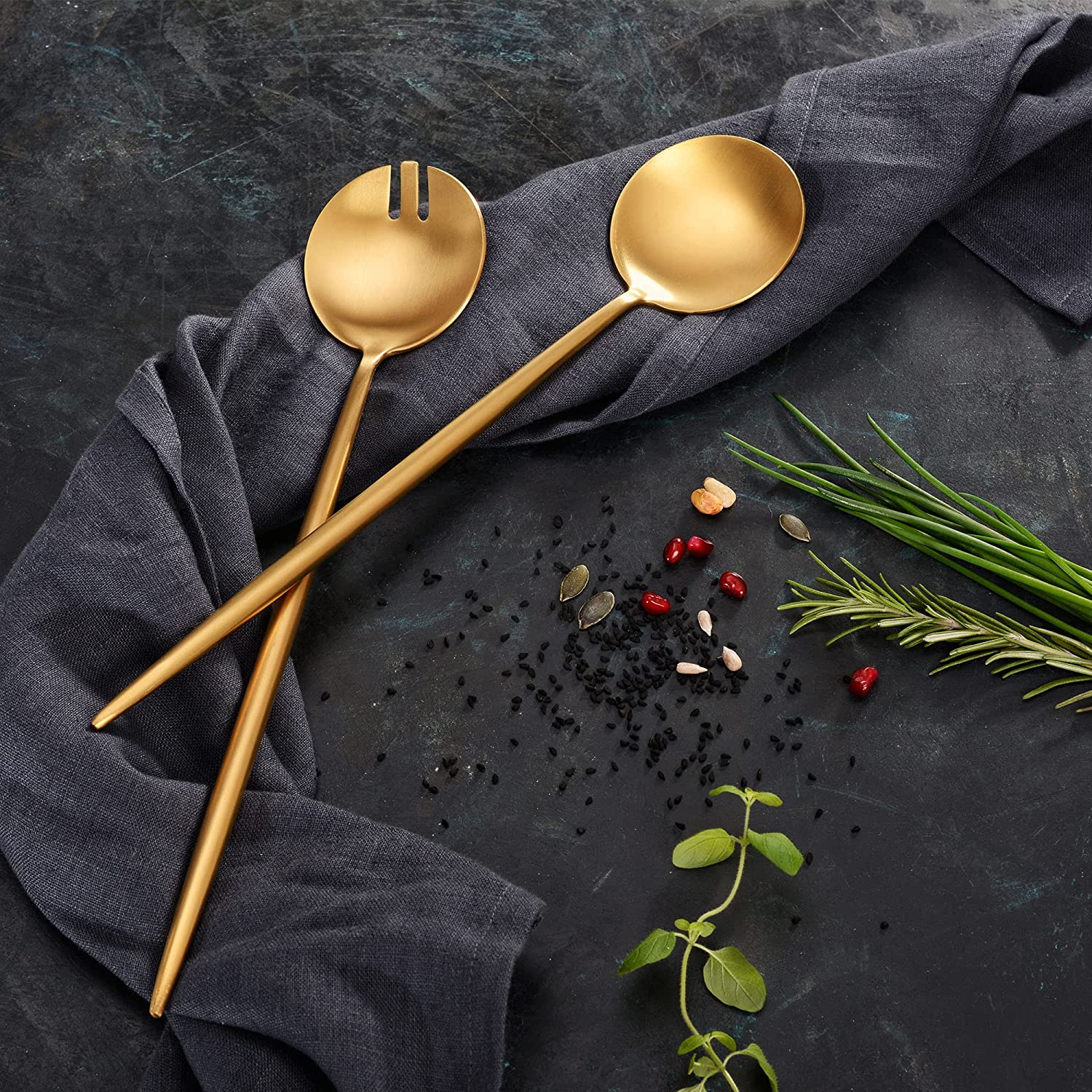 Elegantes Salatbesteck GOLD 2-teilig Edelstahl PVD-beschichtet Spülmaschinengeeignet Farbe: gold Zeitloses schlichtes Design Material: Edelstahl 18/0 (Chromstahl) 1 Salatlöffel Gesamtlänge ca. 25 cm 1 Salatgabel Gesamtlänge ca. 25 cm