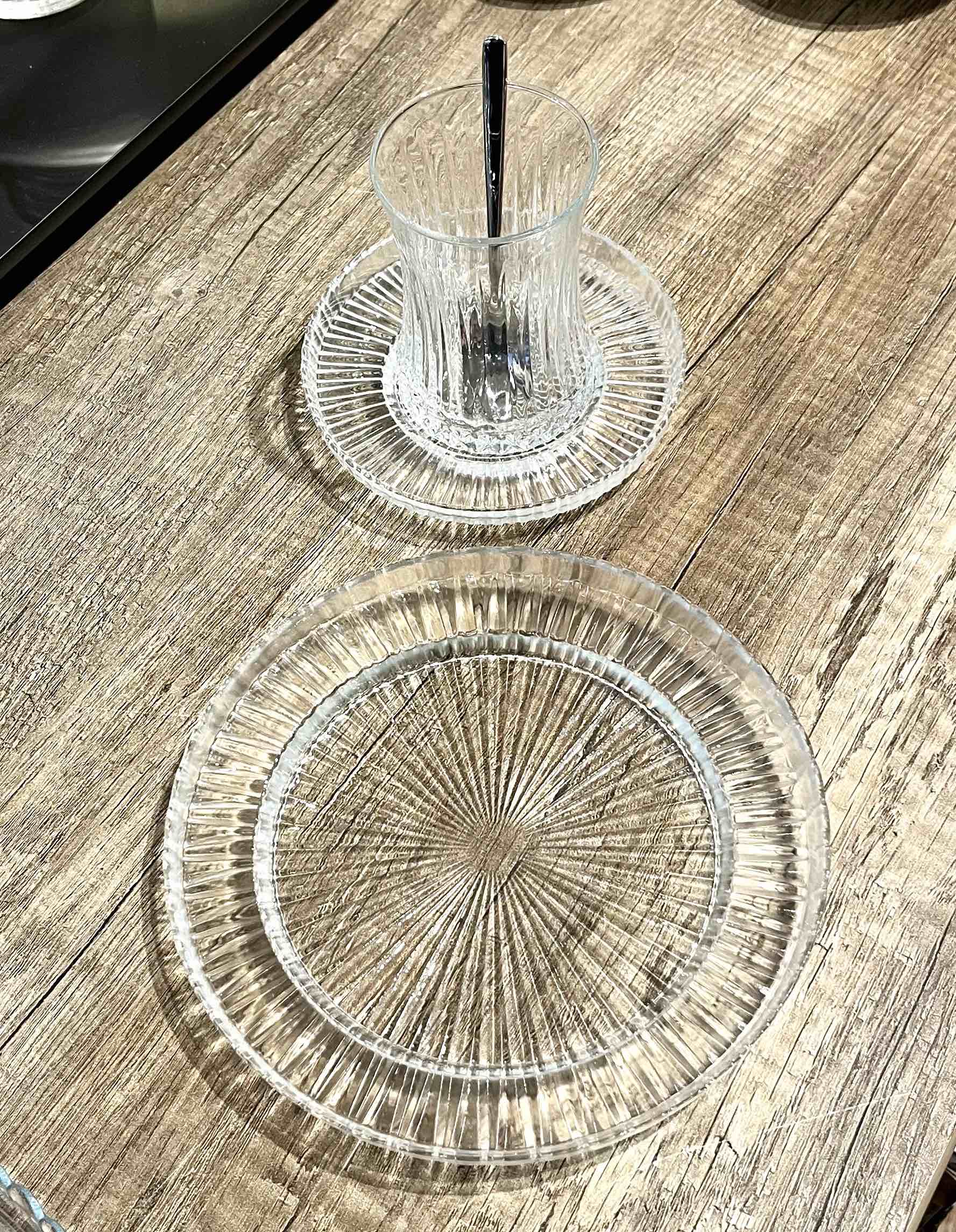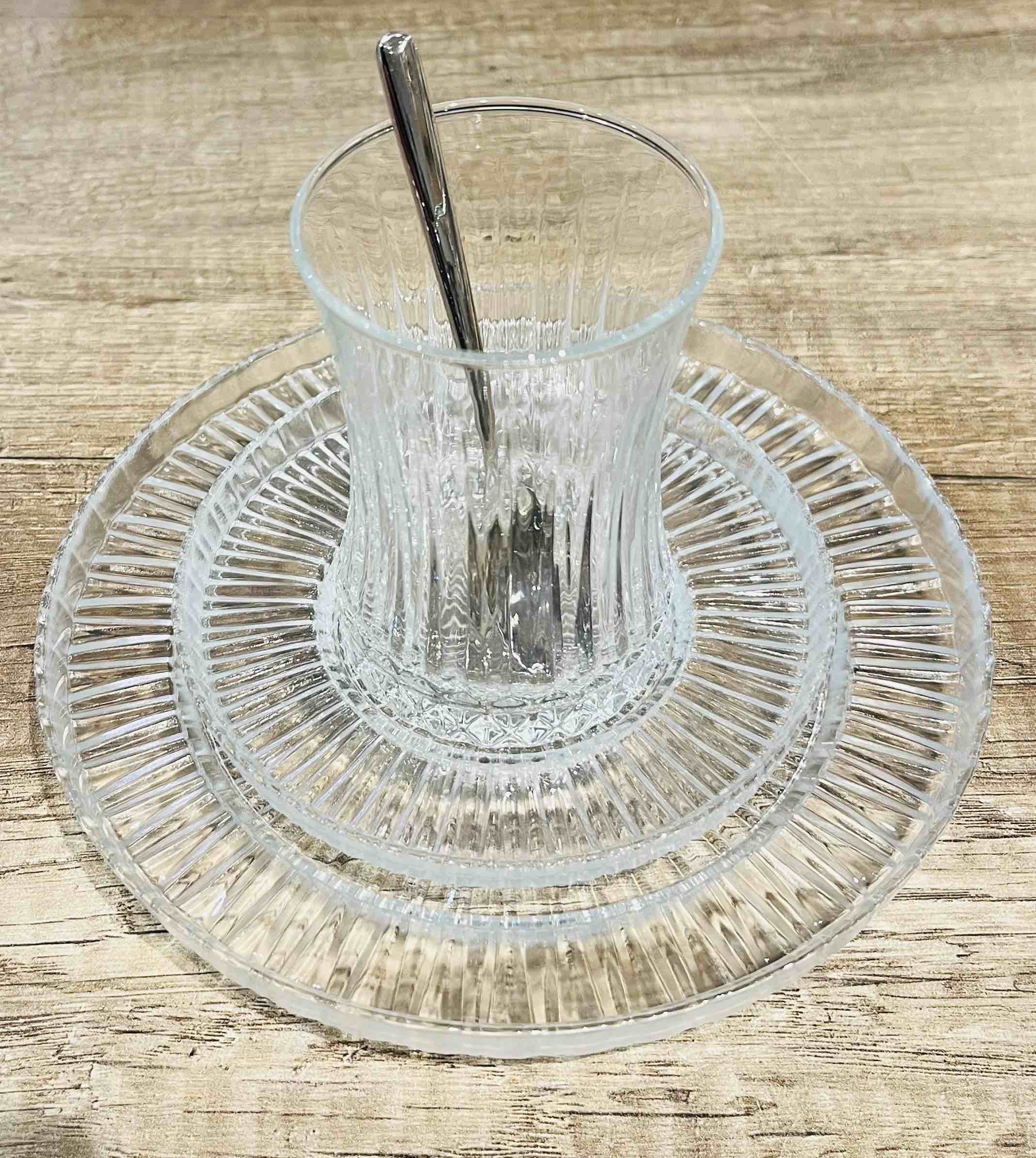 FAVORI Untersetzer für Teegläser Kristalloptik 6 Stück 6 x Untersetzer z.B. passend für Eylsia Teegläser von Pasabahce (Ohne der abgebildeten Elysia Teegläser) Modell: Favori Duchmesser: ca. 12 cm Marke Untersetzer: KAVEH Material: Glas Spülmaschinengeeignet