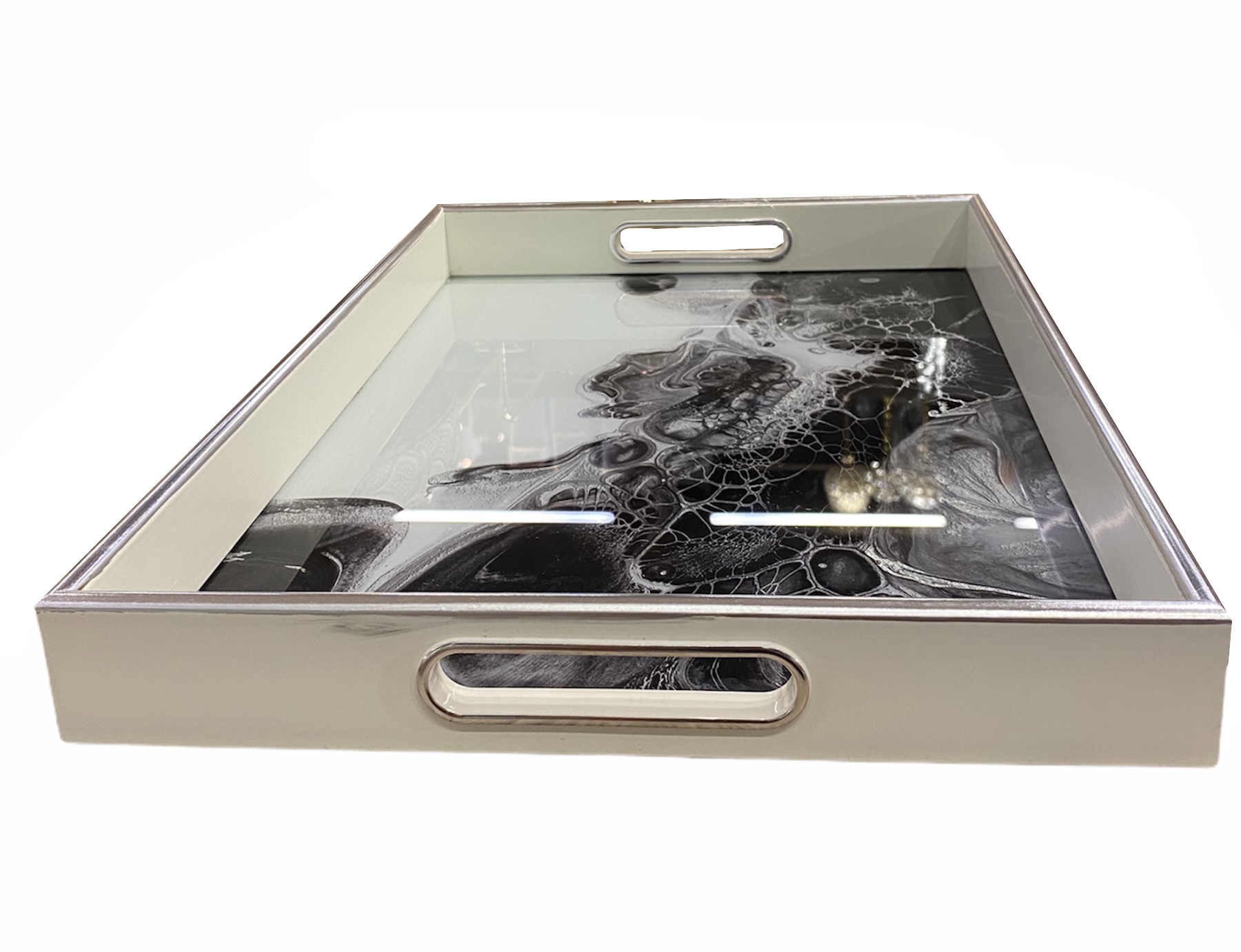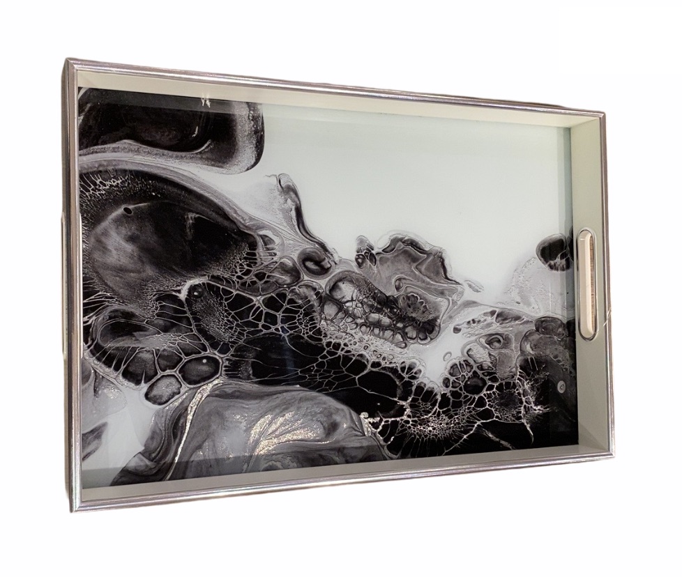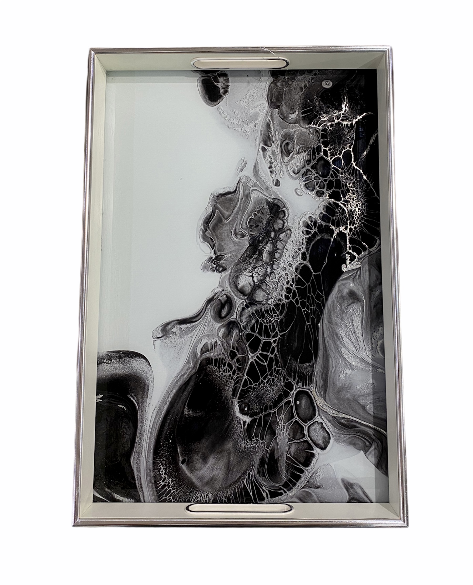 Produktinformationen "FUGURATO Deko Serviertablett Marmorlook 010 Schwarz-Silber Eckig 30x45cm"