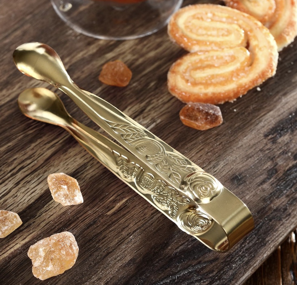 Gräwe Zuckerzange GOLD mit Rosendekor