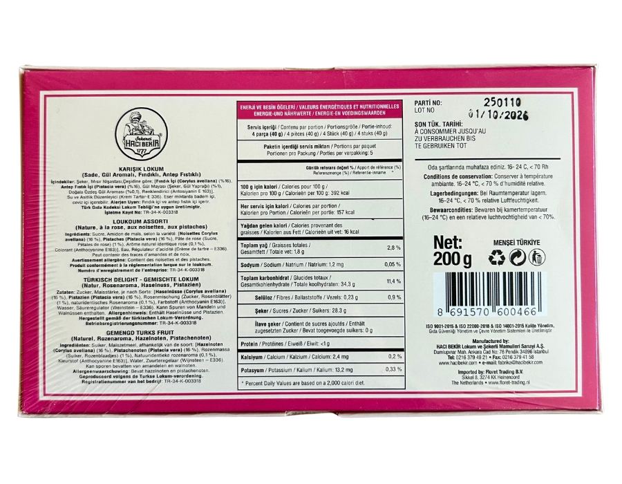 Produktinformationen "HACI BEKIR Premium Lokum mit Gemischten Aromen 200 g"