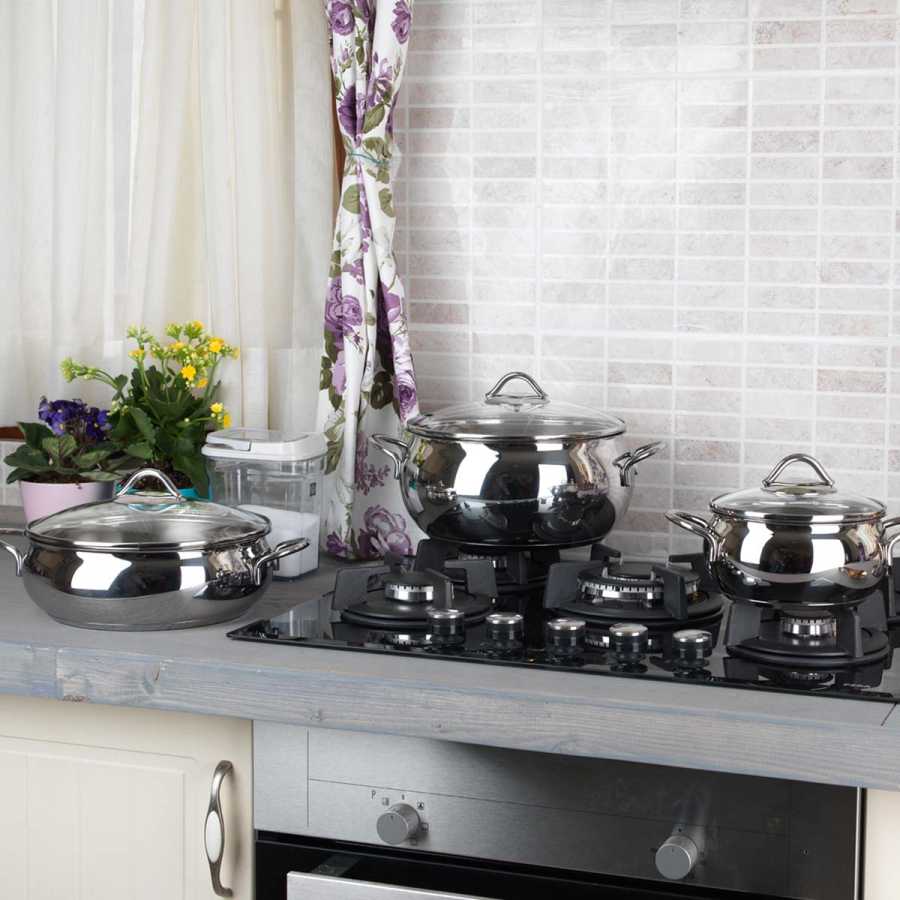 - Alle Töpfe sind mit Edelstahl-Deckel