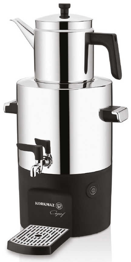 Korkmaz Samowar CAYSEF A841-01 Silber SHINY 2 Liter + 5 Liter