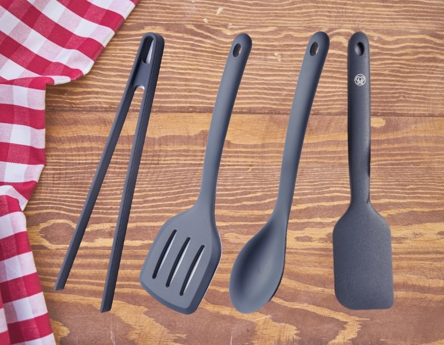 - Set Inhalt: Servierlöffel, Schlitz Pfannenwender, Küchenzange und Silikon Spatel