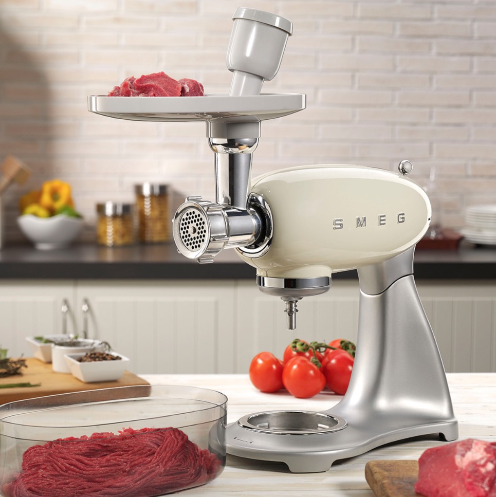 SMEG Küchenmaschine CREME 50's Style SMF02CREUFarbe: CREMEDas Design des Standmixers im Stil der 50er Jahre verkörpert sowohl Leistung als auch Eleganz und dient als funktionales Werkzeug, das Raffinesse und Stil in die Küche bringt. Zehn Geschwindigkeitsstufen zur optimalen Anpassung an die verschiedenen Teigkonsistenzen, um stets hervorragende Ergebnisse zu gewährleisten Smooth Start System, für perfektes Mischen der Zutaten und weniger Spritzer Leistungsstarker Motor und planetarische Rotationsbewegung für perfektes Vermischen der Zutaten Vielseitige Einsatzmöglichkeit dank der drei mitgelieferten Zubehörteile Schneebesen, Flachrührer und KnethakenVon der Eismaschine bis zum Nudelset, eine große Auswahl an separat erhältlichem ZubehörEigenschaften:Max. Leistungsaufnahme: 800 WAbmessungen Produkt (HxBxT): 378x405x221 mmBruttogewicht: 11,2 kg Produkthöhe: 378 mm/ (490 mm bei gekipptem Motorkopf)Material Motorgehäuse: Aluminium-DruckgussFarbe des Standfußes: SilberMaterial Standfuß: Aluminium-DruckgussMaterial der Rührschüssel: EdelstahlMax. Füllmenge der Rührschüssel: 4,8 LMax. Füllmenge Eiweiß/mittelgroße Eier: 12Min. Füllmenge Eiweiß/mittelgroße Eier: 2Max. Füllmenge Feingebäck-Teig: 2,6 kgMax. Füllmenge Kuchenteig: 2,8 kg Max. Füllmenge Eier-Pastateig: 500 g Teig mit 5 mittelgroßen EiernMax. Füllmenge Brot-, Pizza- oder Pastateig: 1,3 kgMax. Füllmenge Schlagsahne: 1 lMin. Füllmenge Schlagsahne: 100 mI