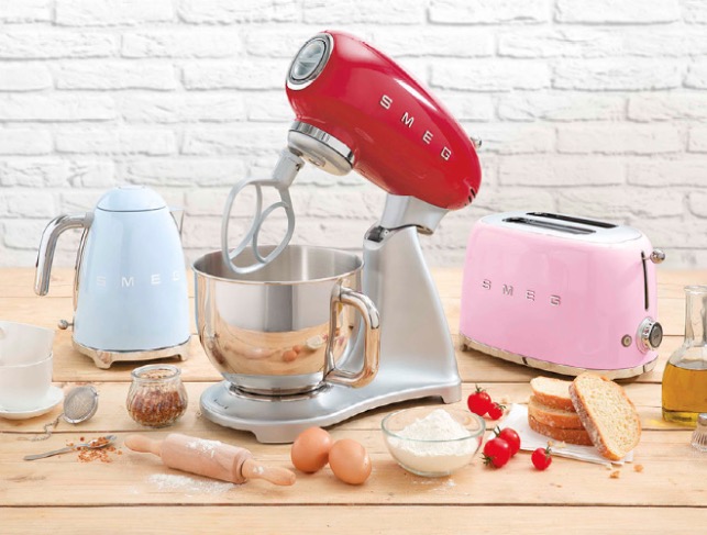 SMEG Küchenmaschine ROT 50's Style SMF02RDEUFarbe: ROTDas Design des Standmixers im Stil der 50er Jahre verkörpert sowohl Leistung als auch Eleganz und dient als funktionales Werkzeug, das Raffinesse und Stil in die Küche bringt. Zehn Geschwindigkeitsstufen zur optimalen Anpassung an die verschiedenen Teigkonsistenzen, um stets hervorragende Ergebnisse zu gewährleisten Smooth Start System, für perfektes Mischen der Zutaten und weniger Spritzer Leistungsstarker Motor und planetarische Rotationsbewegung für perfektes Vermischen der Zutaten Vielseitige Einsatzmöglichkeit dank der drei mitgelieferten Zubehörteile Schneebesen, Flachrührer und KnethakenVon der Eismaschine bis zum Nudelset, eine große Auswahl an separat erhältlichem ZubehörEigenschaften:Max. Leistungsaufnahme: 800 WAbmessungen Produkt (HxBxT): 378x405x221 mmBruttogewicht: 11,2 kg Produkthöhe: 378 mm/ (490 mm bei gekipptem Motorkopf)Material Motorgehäuse: Aluminium-DruckgussFarbe des Standfußes: SilberMaterial Standfuß: Aluminium-DruckgussMaterial der Rührschüssel: EdelstahlMax. Füllmenge der Rührschüssel: 4,8 LMax. Füllmenge Eiweiß/mittelgroße Eier: 12Min. Füllmenge Eiweiß/mittelgroße Eier: 2Max. Füllmenge Feingebäck-Teig: 2,6 kgMax. Füllmenge Kuchenteig: 2,8 kg Max. Füllmenge Eier-Pastateig: 500 g Teig mit 5 mittelgroßen EiernMax. Füllmenge Brot-, Pizza- oder Pastateig: 1,3 kgMax. Füllmenge Schlagsahne: 1 lMin. Füllmenge Schlagsahne: 100 mI