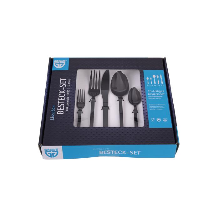 LISSABON Besteckset SCHWARZ 10-teilig für 2 Personen
