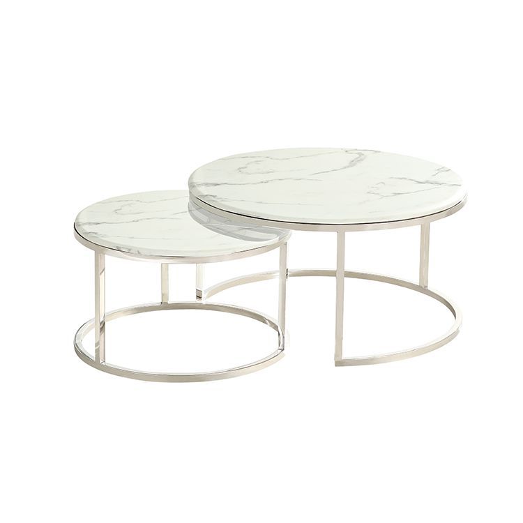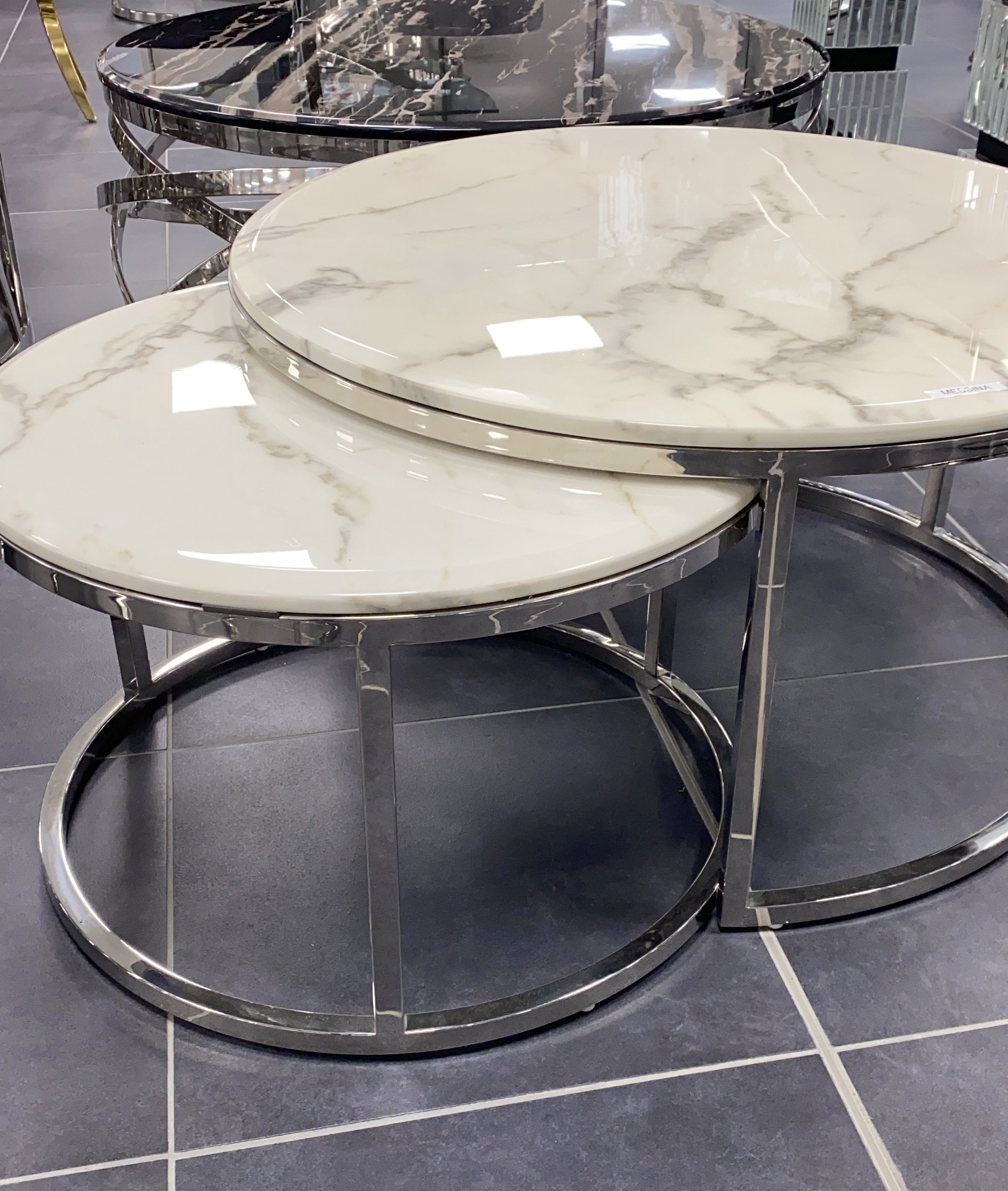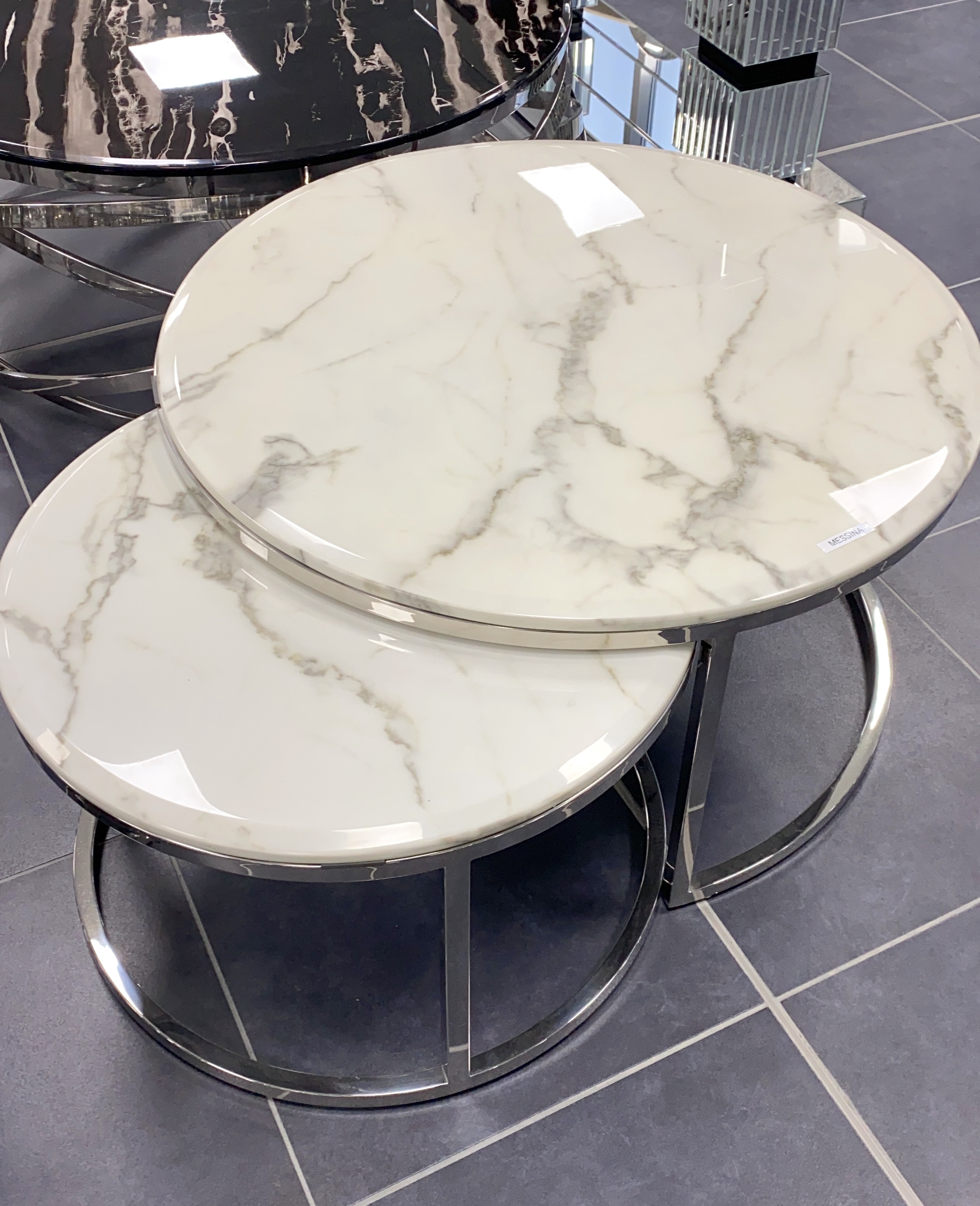 Luxus Couchtisch MESSINA Marmor Weiß-Chrom 80x42cm 2-teilig