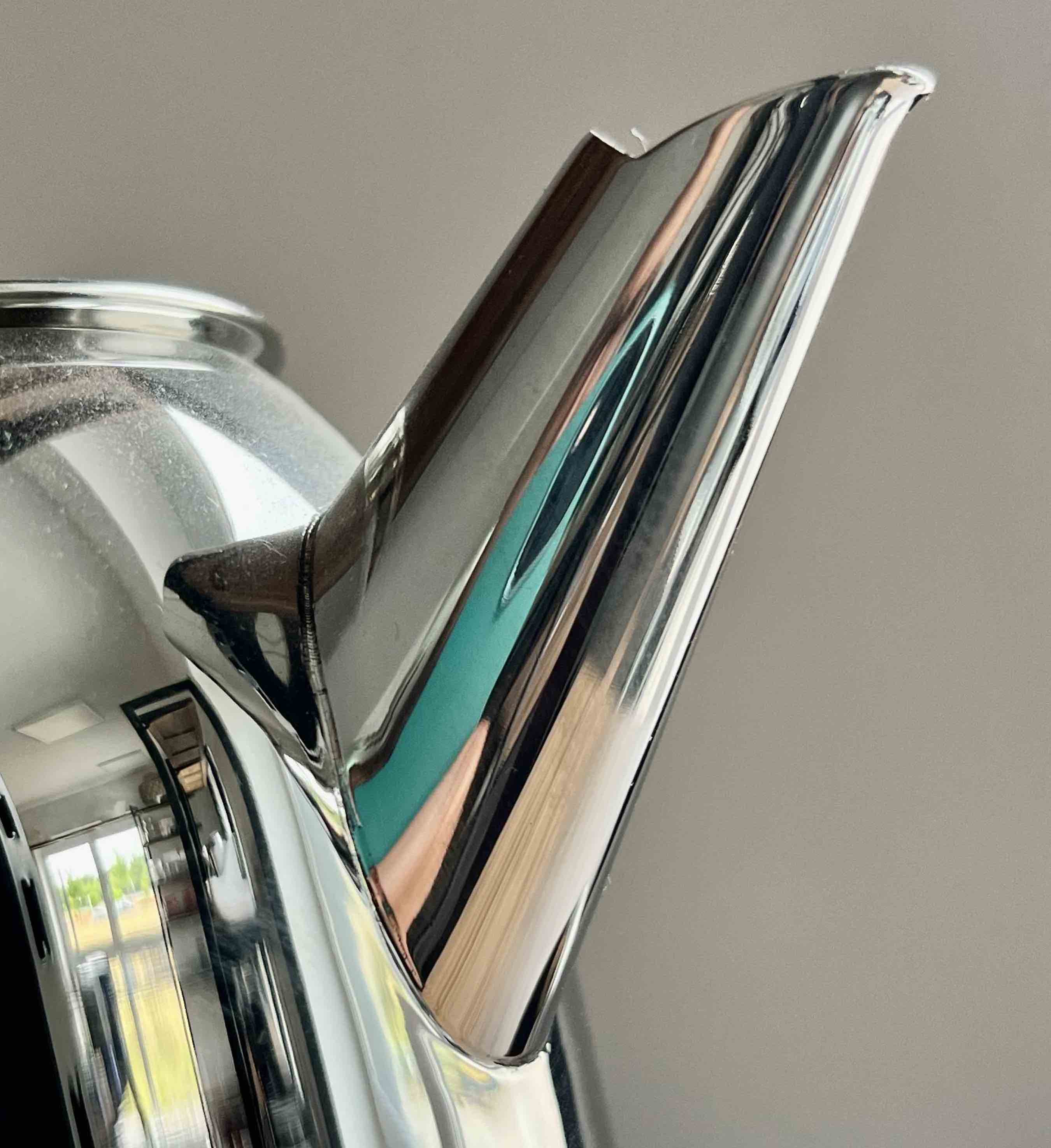 - Farbe: Hochpolierte Silber mit schwarzem Silikongriff
