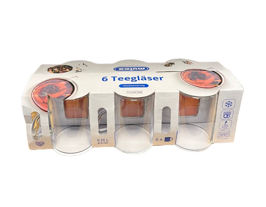 Produktinformationen "Mulex Dünne Teegläser Kaffeegläser mit Henkel 6er Set"