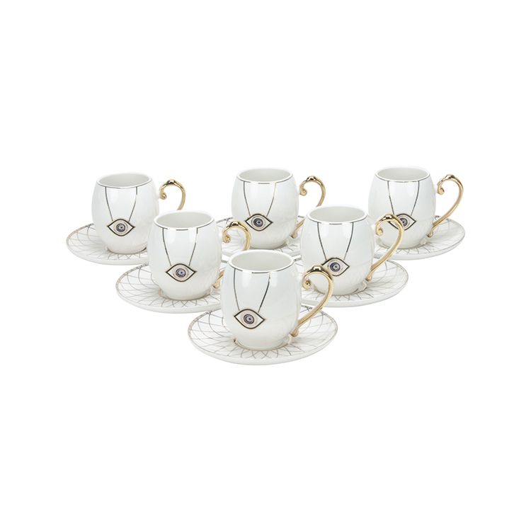 NAZAR Design Tee- und Kaffeetassen Weiß-Weiß 12-teilig 6 Personen Set