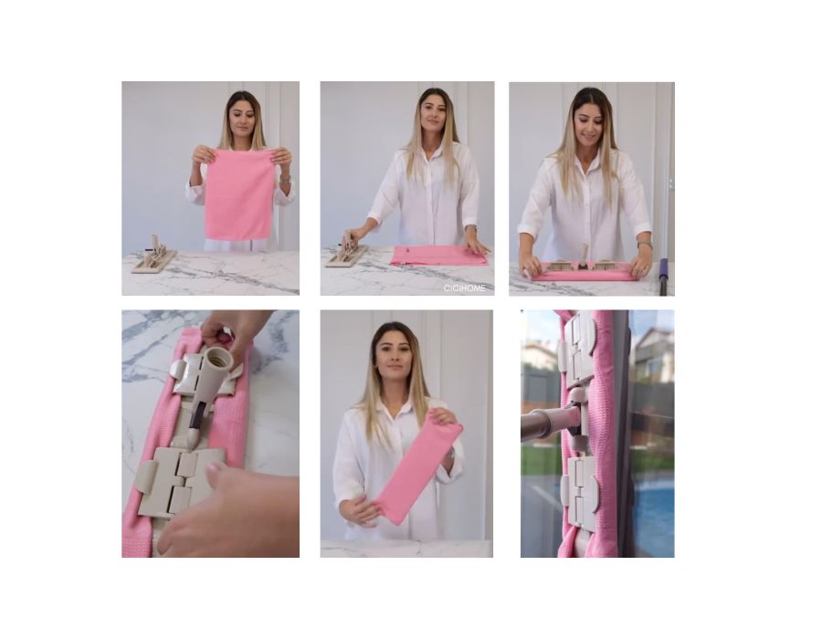 - Dank Klappverschluß kann man auch Ilbays Tücher befestigen und so Fenster, Möbel sauber machen.