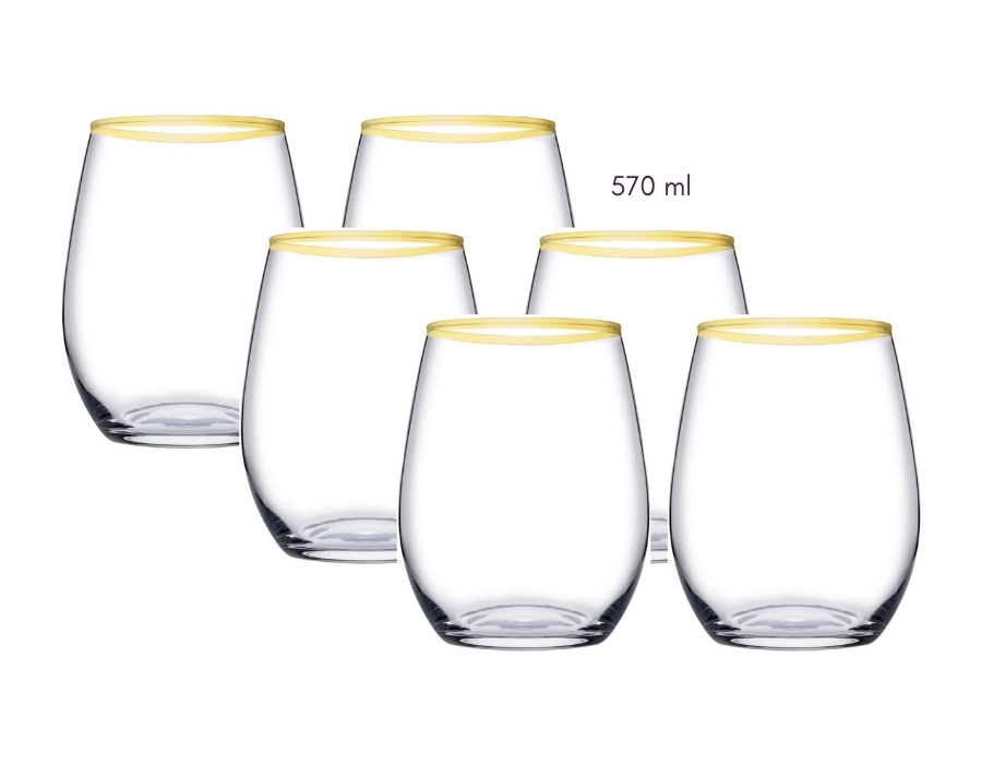 Pasabahce AMBER GOLD Gläser 6 x Gläser Mit vergoldeten Bordüren Kapazität: 350 ml Höhe: 10 cm Maximaler Durchmesser: 8 cm Modell: AMBER Golden Touch Marke: Pasabahce Material: Glas