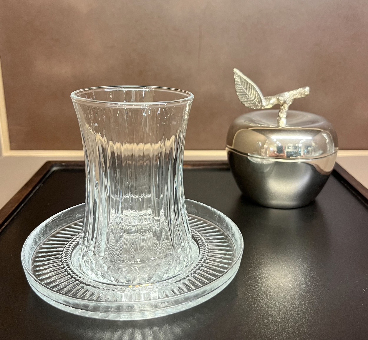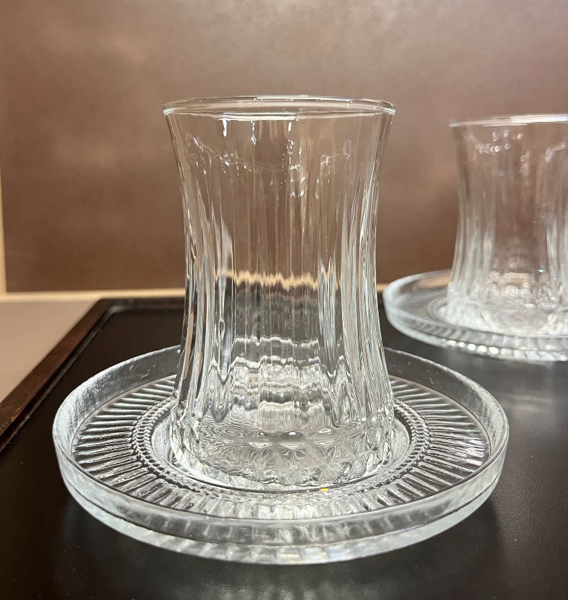 Pasabahce ELYSIA FAVORI Teeset 12-teilig 170 ml Das FAVORI Türkische Teegläser Set in Kristalloptik ist ein stilvolles und praktisches Geschirr für Liebhaber türkischen Tees. 6 x Teeläser und 6 x Untersetzer Kapazität Teegläser: ca. 170 ml Höhe Teegläser: 9,6 cm Durchmesser Teegläser oben: 6,4 cm Durchmesser Teegläser boden: 3,7 cm Modell: ELYSIA Marke Teegläser: Pasabahce Marke Untersetzer: KAVEH Material: Glas Spülmaschinengeeignet