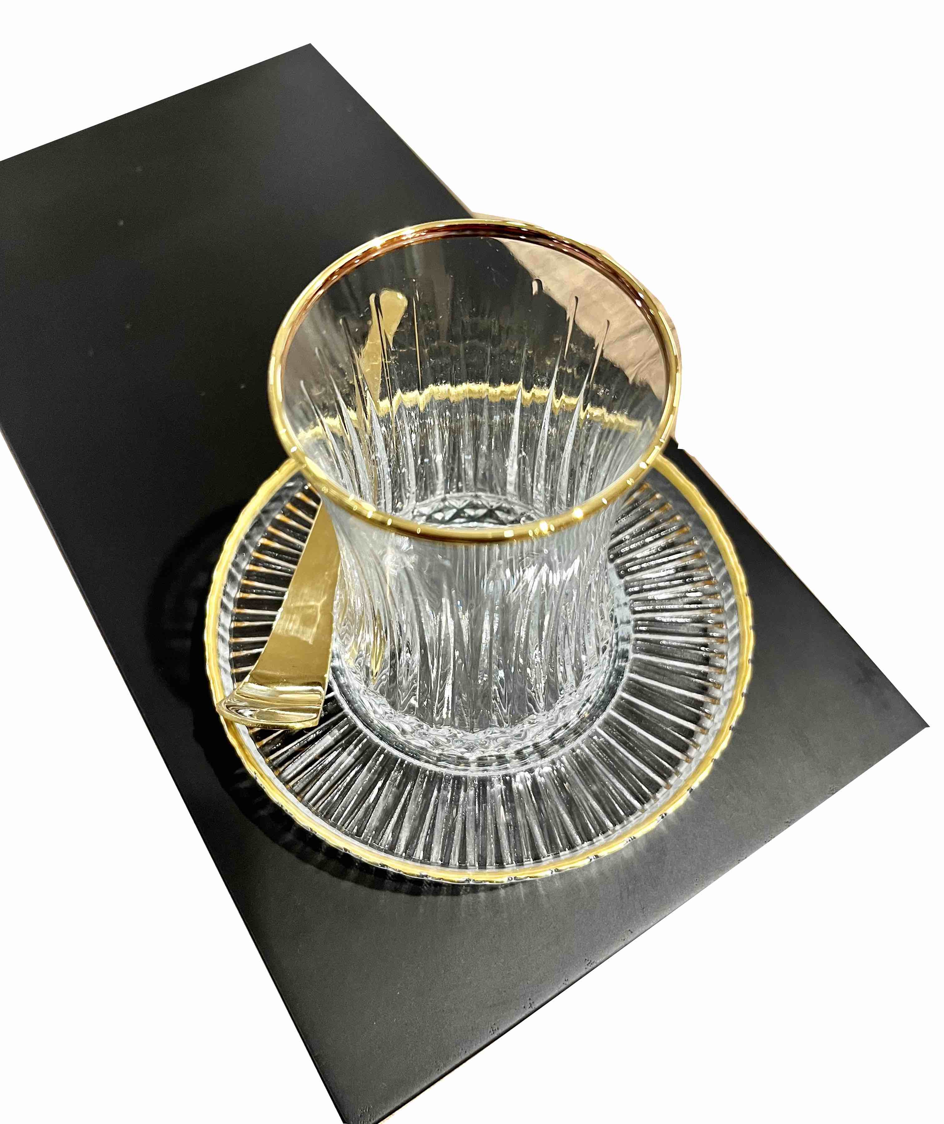 - Set Inhalt: 6 x Teeläser und 6 x Untersetzer mit vergoldeten Bordüren (ohne der abgebildeten Teelöffel)