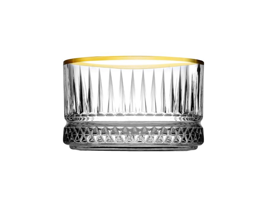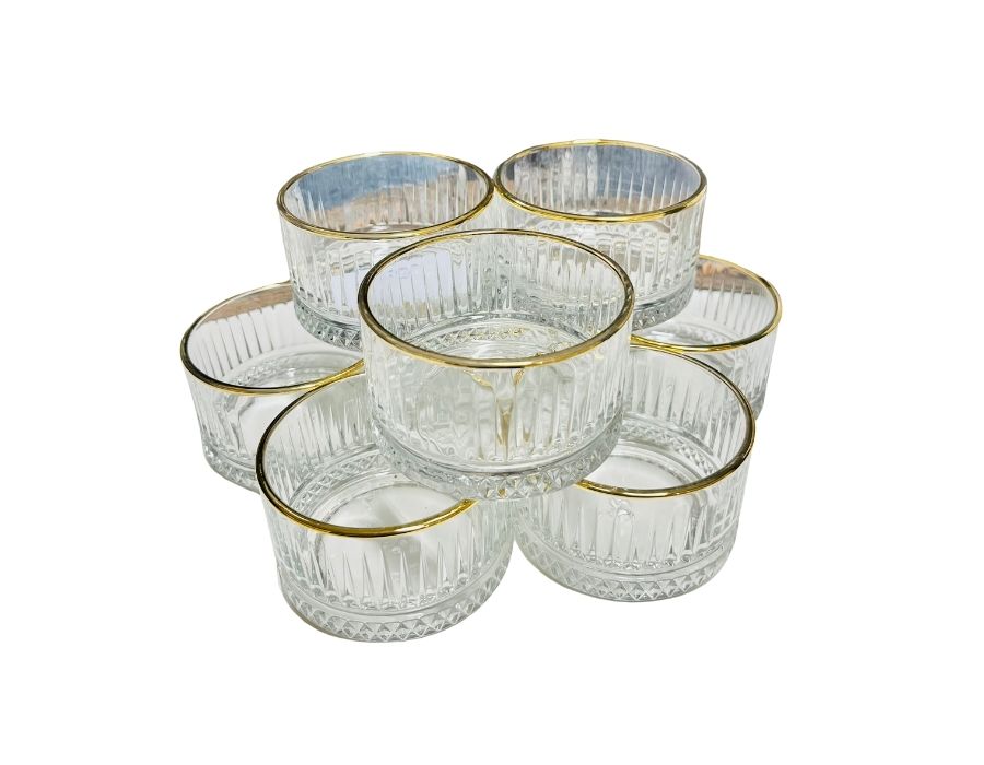 Pasabahce ELYSIA Schale 210 ml 4 x Schalen Mit vergoldeten Bordüren Modellnummer: 530038 Kapazität: ca 210 ml Höhe: 5,7 cm Durchmesser: 9 cm Modell: ELYSIA Marke: Pasabahce Material: Glas