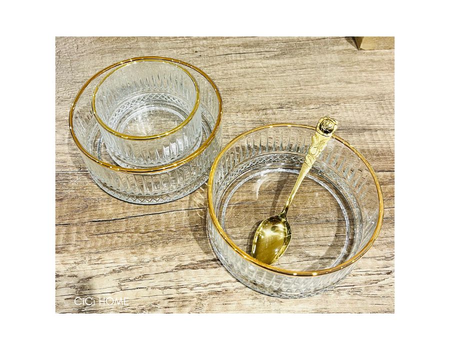 Pasabahce ELYSIA Schale 210 ml 4 x Schalen Mit vergoldeten Bordüren Modellnummer: 530038 Kapazität: ca 210 ml Höhe: 5,7 cm Durchmesser: 9 cm Modell: ELYSIA Marke: Pasabahce Material: Glas