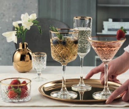 Pasabahce TIMELESS GOLD 440236 Champagnerschale Dessertschale 4 x Gläser Mit vergoldeten Bordüren Im Kristall-Design Modellnummer: 440236-Gold Kapazität: 255 ml Höhe: 15,7 cm Durchmesser oben: 11 cm Modell: TIMELESS Golden Touch Marke: Pasabahce Material: Glas