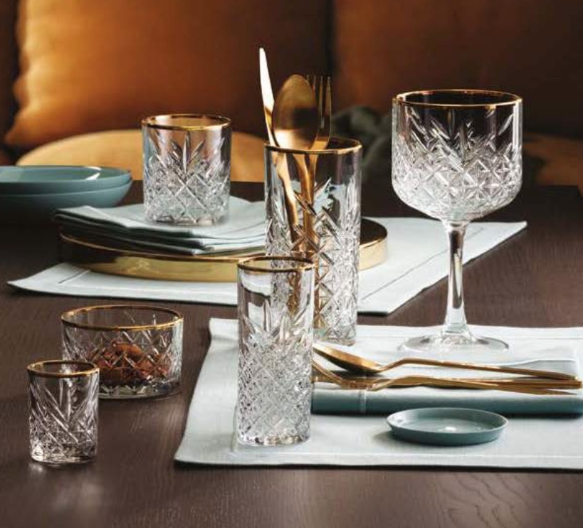 Pasabahce TIMELESS GOLD Gläser 4 x Gläser Mit vergoldeten Bordüren Kapazität: 345 ml Höhe: 9,6 cm Durchmesser: 8,5 cm Modell: TIMELESS Golden Touch Marke: Pasabahce Material: Glas