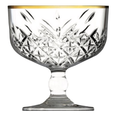 Pasabahce TIMELESS GOLD 440236 Champagnerschale Dessertschale 4 x Gläser Mit vergoldeten Bordüren Im Kristall-Design Modellnummer: 440236-Gold Kapazität: 255 ml Höhe: 15,7 cm Durchmesser oben: 11 cm Modell: TIMELESS Golden Touch Marke: Pasabahce Material: Glas
