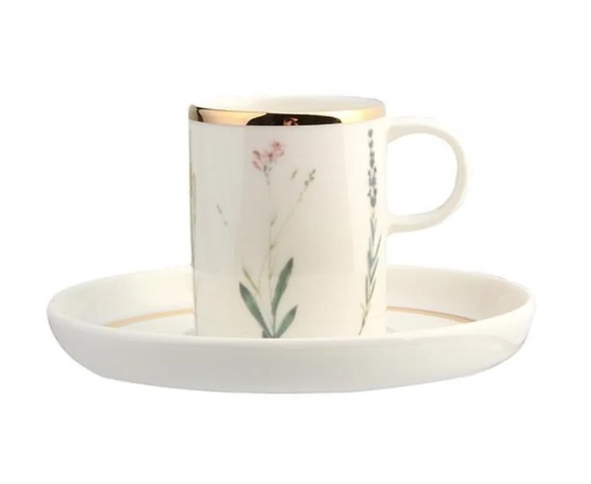 Porland BOTANICAL Premium Türkischer Kaffee Geschenk Set 8-teilig In der Premium Geschenkverpackung Geeignet auch für Espresso Kaffee Mit vergoldeten Bordüren 1-Person Türkischer Kaffee / Espresso Set 1 x Mokkatassen Design10 1 x Untersetzer 1 x Vergoldete Wassergläser zum Kaffee Serie: Botanical Marke: Porland Material: Premium Porland Porzellan Premium Marke PORLAND aus der Türkei