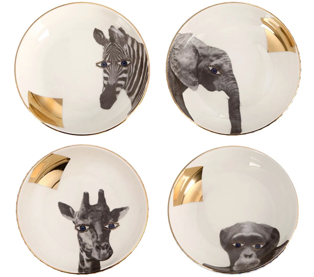 - 4 x Tiefer Teller mit WILD LIFE Design (Affe, Zebra, Giraffe und Elefant)