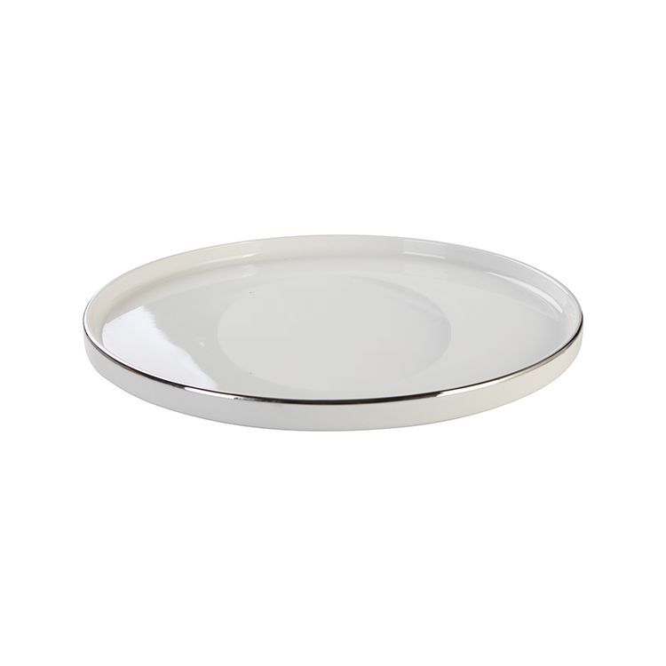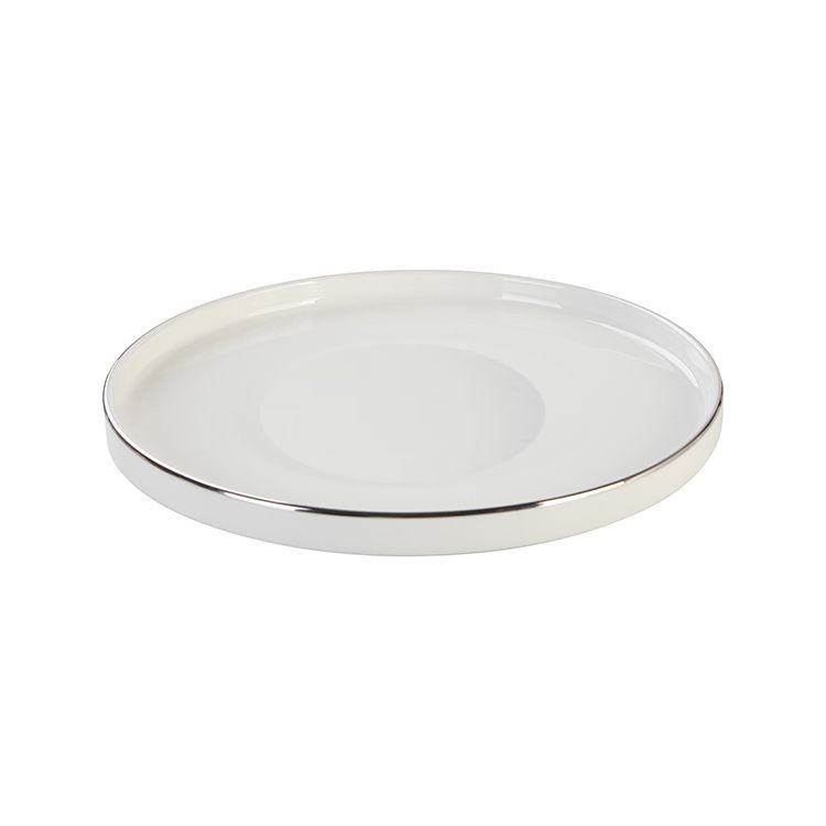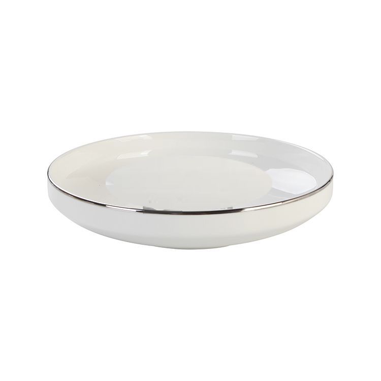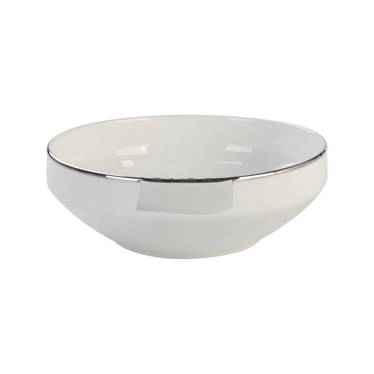 Premium Servierschüssel LUNEL Weiß-SILBER 1 x Salatschüssel Größe: 23 x 8 cm Mit vergoldeten Bordüren Modell: LUNEL Material: Bone Porzellan Marke: Bricard