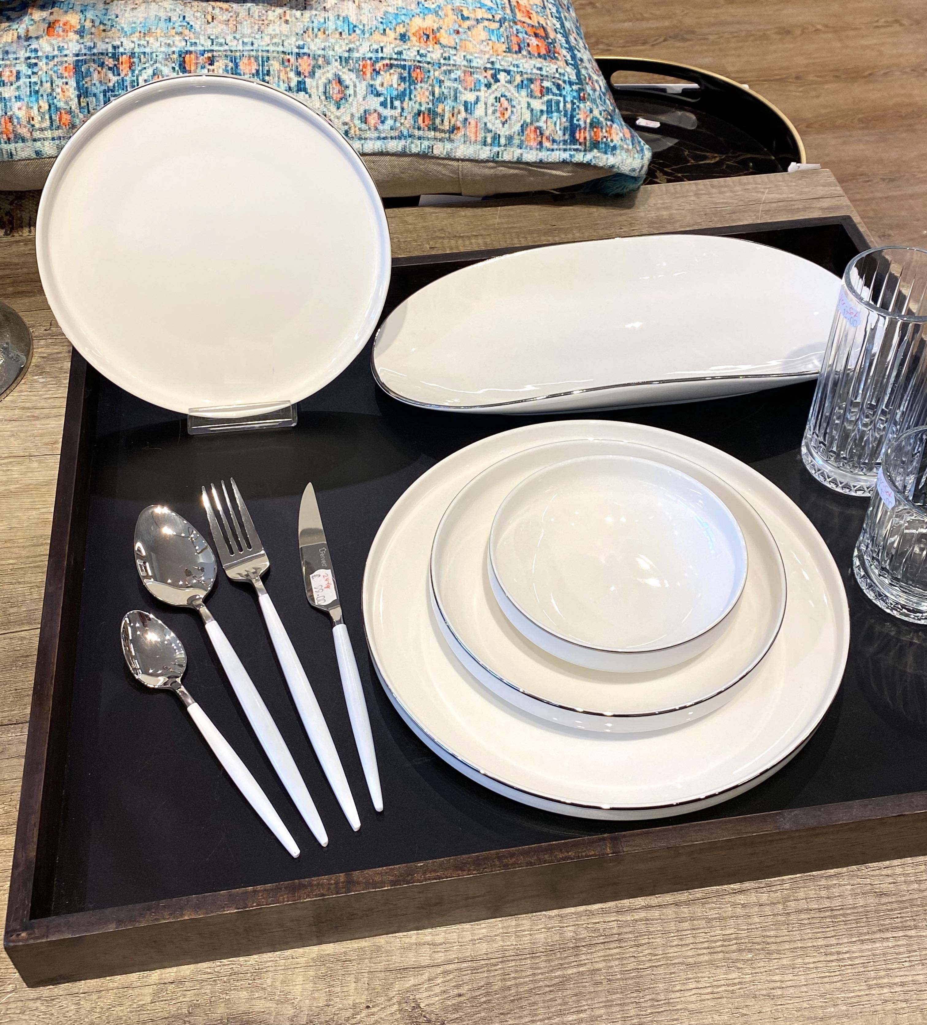 Premium Tafelservice LUNEL Weiß-Silber 27-teilig