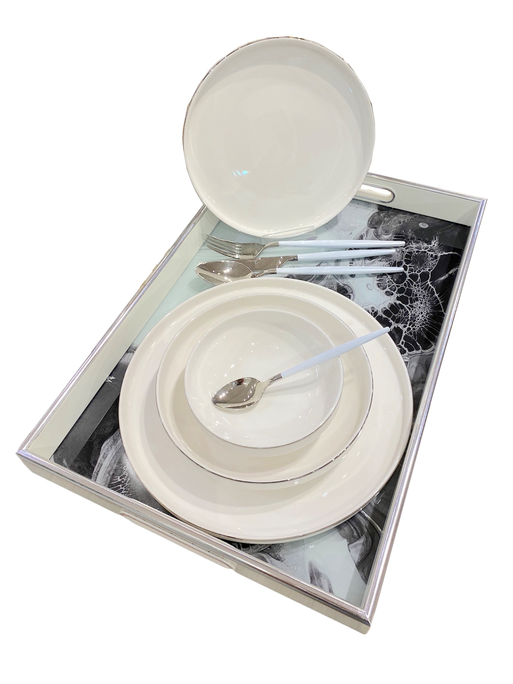 Premium Tafelservice LUNEL Weiß-Silber 24-teilig