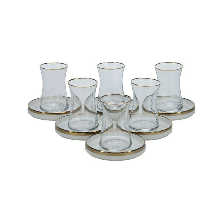 SENS Elegantes Teeset 6 Personen Set 12-teilig 6 Teegläser 170 ml (Ohne die Teelöffel auf dem Foto) 6 Untersetzer Farbe Untersetzer: Weiß-Grau Marmorlook mit vergoldeten Bordüren Pasabahce Gläser mit vergolten Bordüren Marke: Bricard Modell: SENS Material: Porzellan und Glas