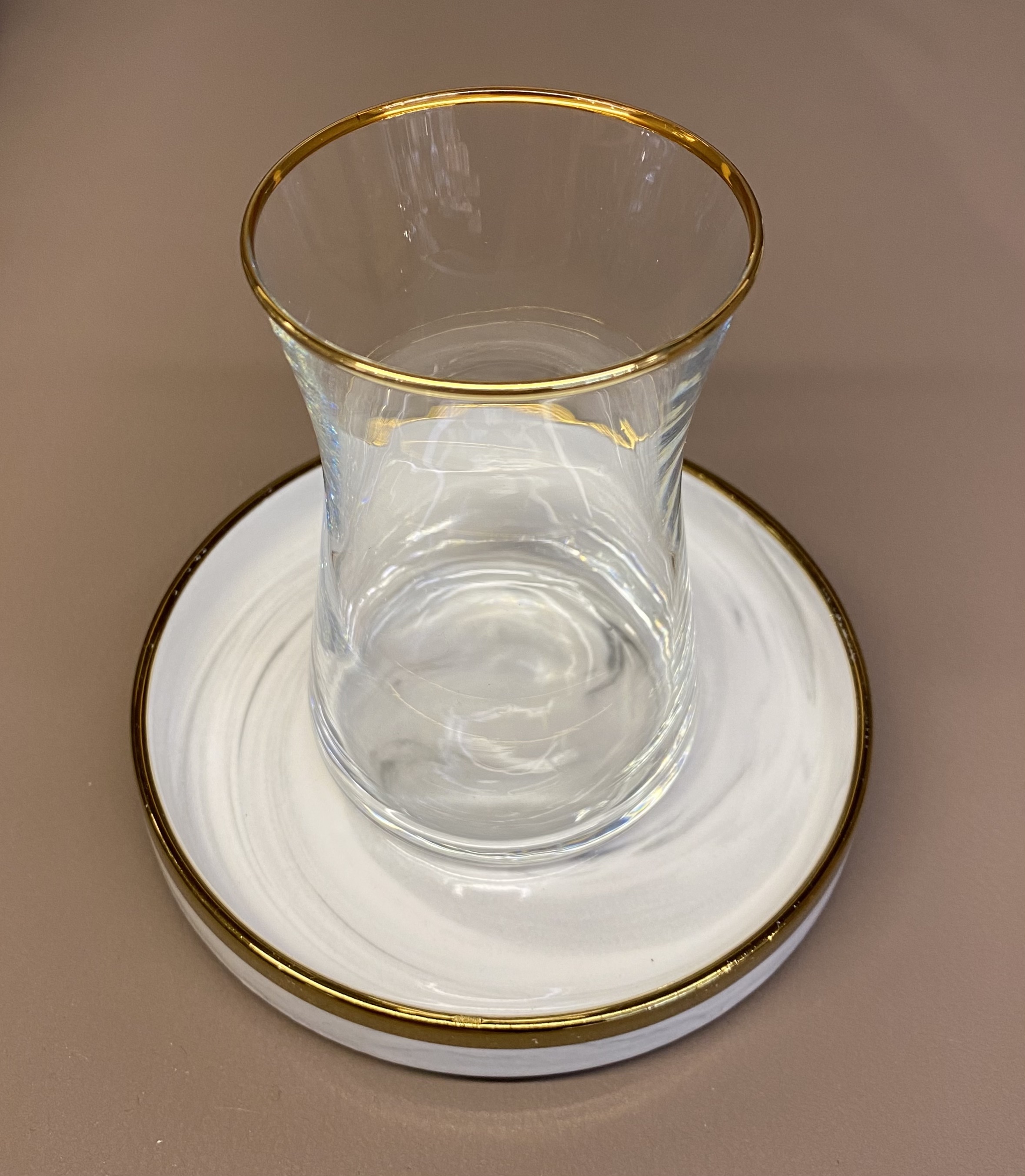 - Farbe Untersetzer: Weiß-Grau Marmorlook mit vergoldeten Bordüren