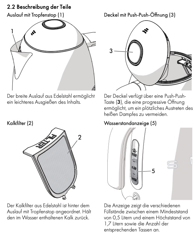 - Fassungsvermögen / Kanne 1,7 l / 7 Tassen