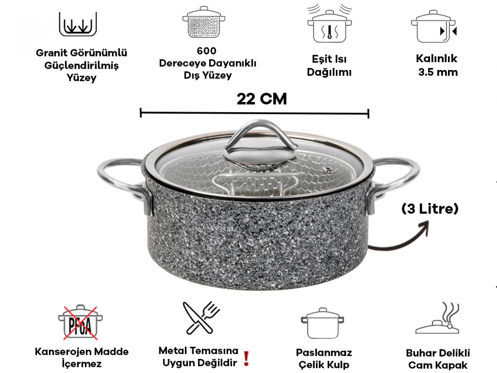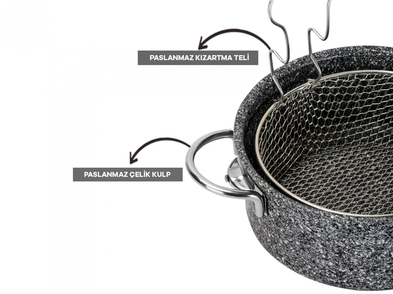 TAC Frittiertopf ULTRA GRANIT mit Siebeinsatz 3 Liter 9x22 cm