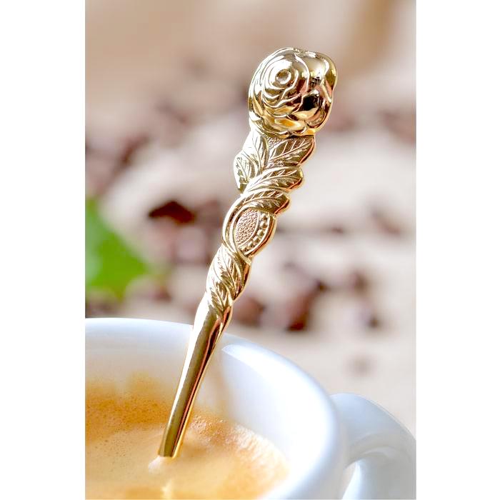 Produktinformationen "Teelöffel Espressolöffel 10 cm GOLD mit Rosendekor 6 Stück"