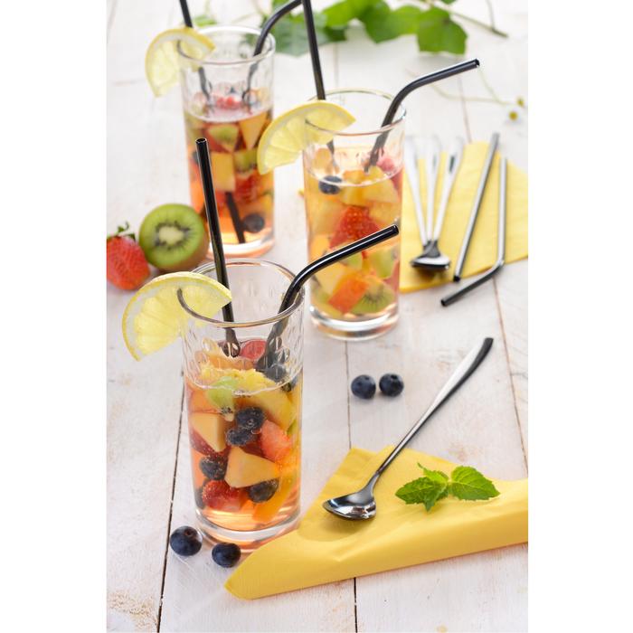 Trinkhalme + Longdrinklöffel, Edelstahl 14-teilig, SCHWARZ
