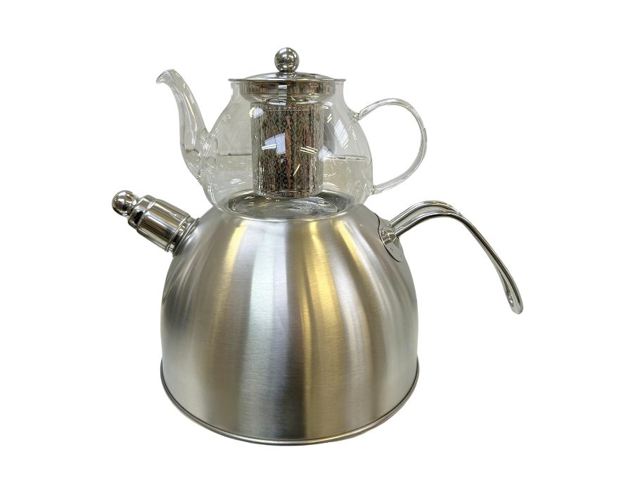 Vintage Türkische Teekanne mit Glaskanne SILBER Induktion