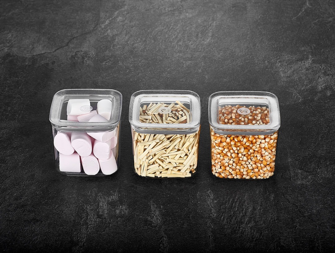 Vipahmet Vakuum Aufbewahrungsboxen Transparent Inhalt von jeder Seite sichtbar Form: Quadratisch 3 Stück: 250 ml - 10,2 x 10,2 x 4,2 cm 3 Boxen je mit Deckel Farbe: Transparent Material: Kunststoff BPA-Frei Vakuum - Luftdicht Marke: Vipahmet