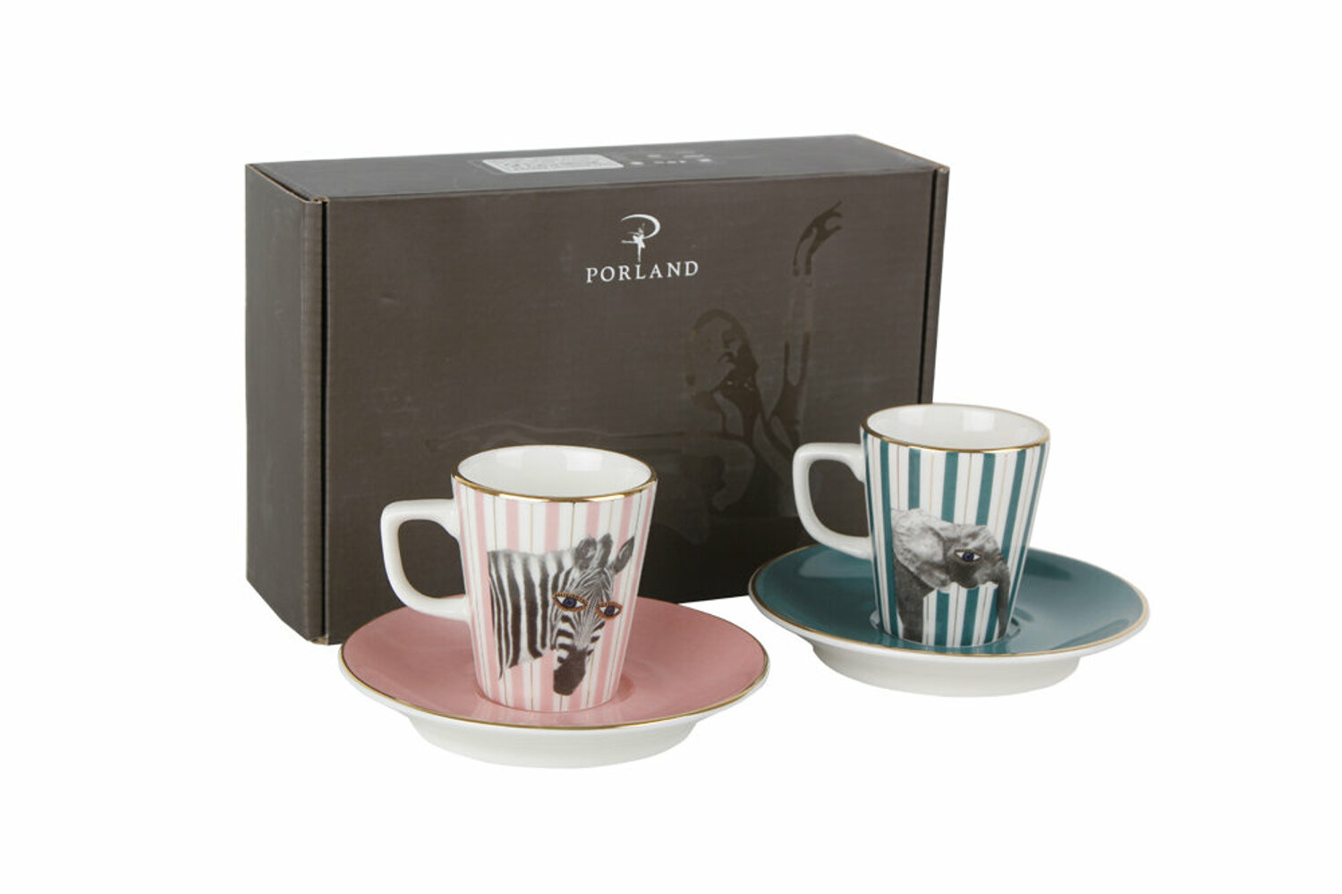 Produktinformationen "WILD LIFE Zebra-Elefant Design Kaffeetasen 4-teilig Porland"